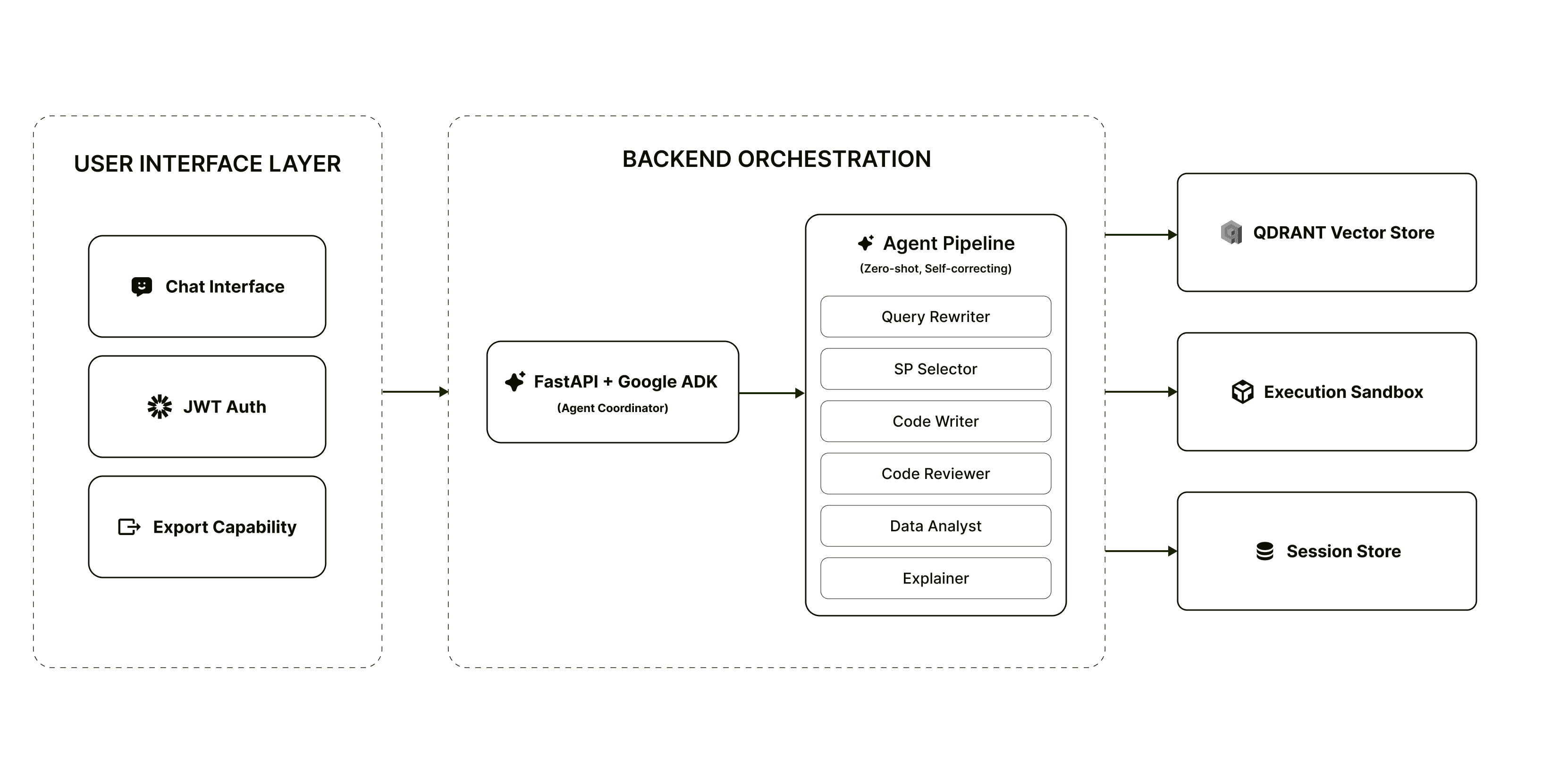 The uniform schema promised analytical consistency across clients, but without intelligent orchestration, that promise remained locked behind complex SQL queries and manual Excel compilation.